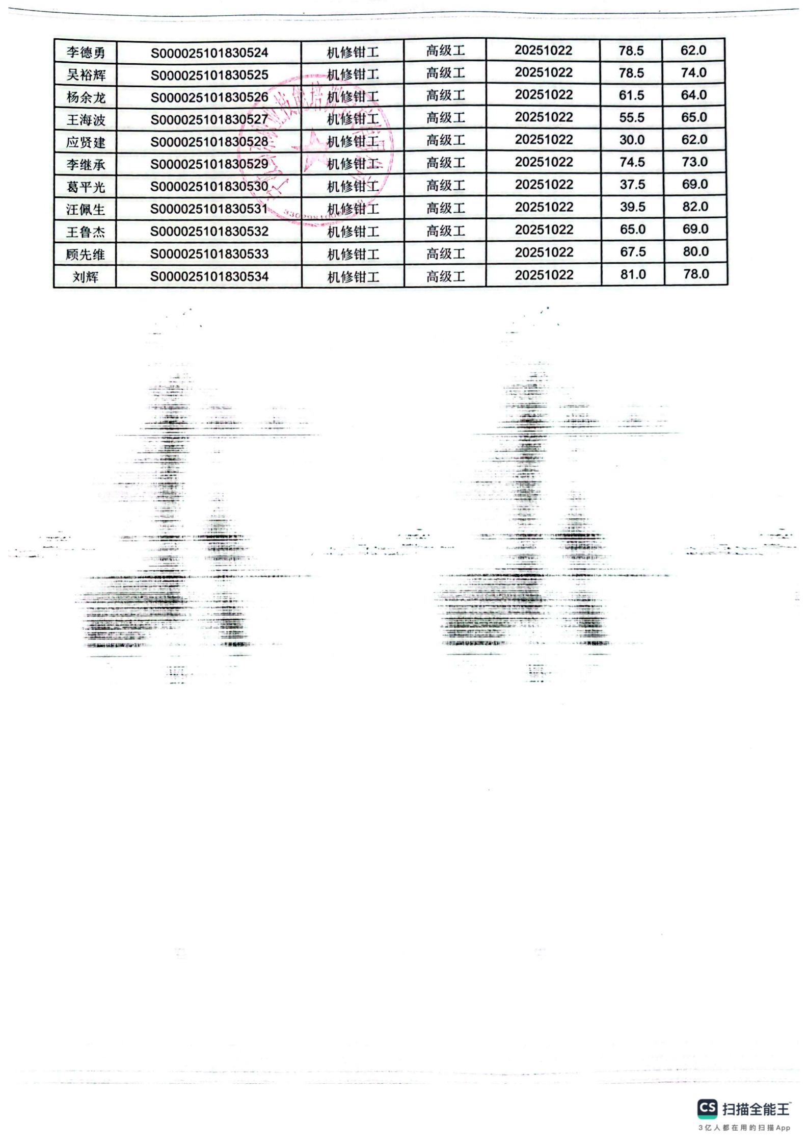 10月22日职业技能等级认定机修钳工高级成绩公示(奉化)