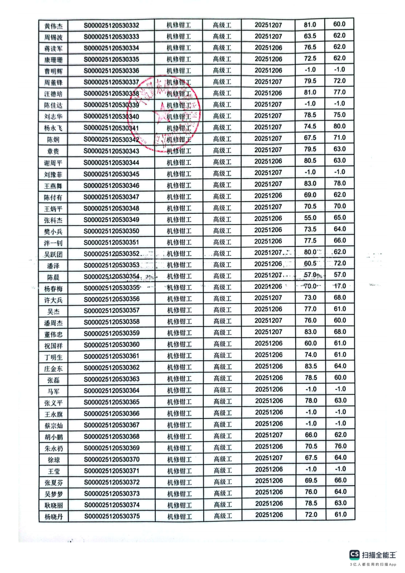 12月6日--12月7日职业技能等级认定机修钳工高级成绩公示